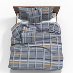 Metro – modernes und dynamisches Design, das elegantes Grau, zartes Blau und warme Gelbtöne miteinander verbindet. Die klassische Karostruktur schafft einen urbanen, aber gemütlichen Eindruck, der an den Rhythmus moderner Städte erinnert. Die perfekte Wahl für minimalistische oder industrielle Bettbezüge.