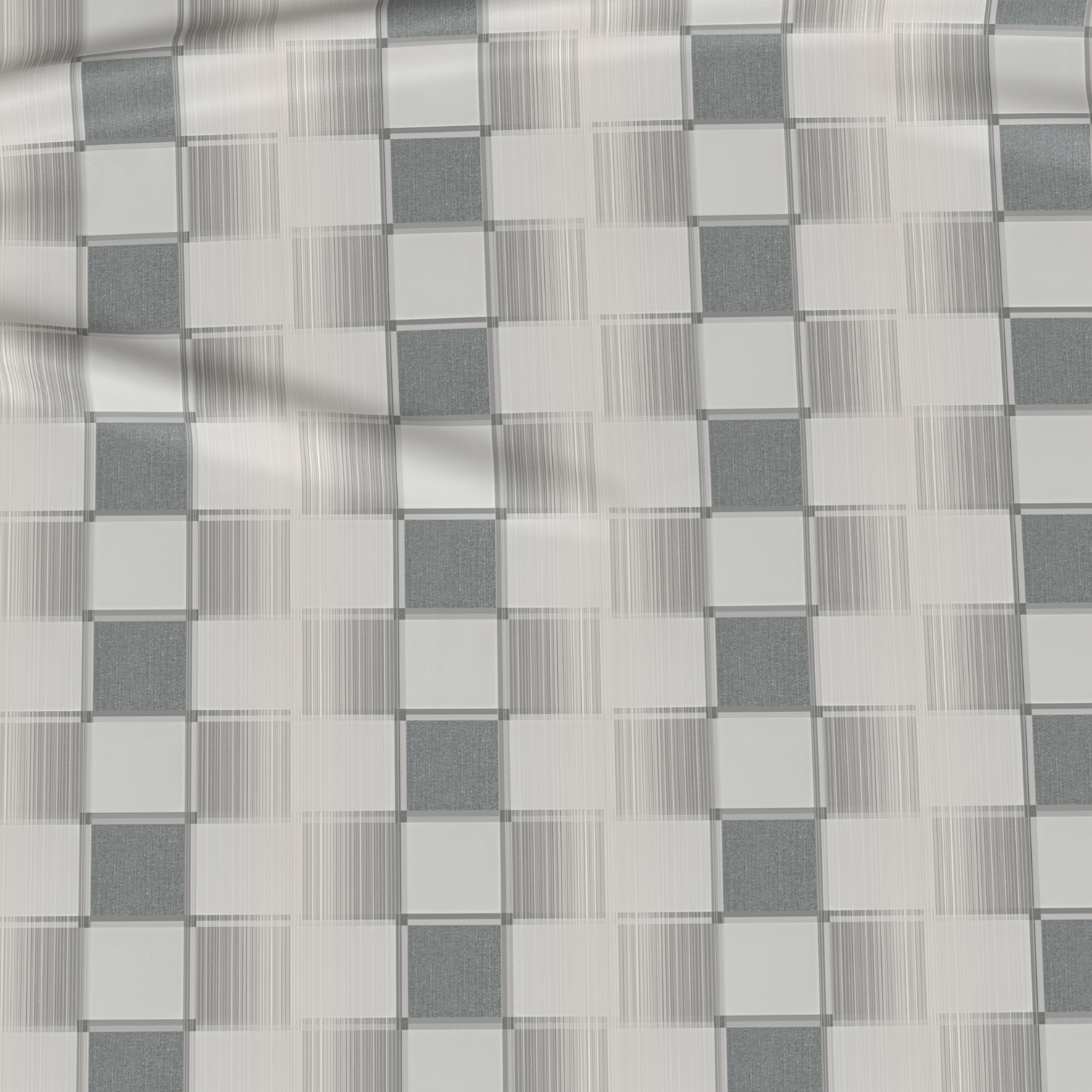 Minimalist chessboard-inspired design combining shades of sand and grey will perfectly complement a contemporary or industrial style bedroom.